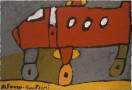 Red Plane, by Alfonso Puautjimi, part of an exhibition of ochre paintings on paper by Alfonso Puautjimi & Jane Tipuamantumirri from Ngaruwanajirri on the Tiwi Islands