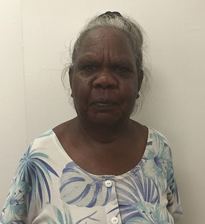 Nancy was born on Fetrel Island, in the Gulf of Carpentaria, Nothern Territory, between Managoora Station and Vanderlin Island. Her Aboriginal name is Yukuwal and her skin name is Nangalama. Nancy’s painting depict Dreaming stories and capture the rich tradi?onal life that she, her parents and grandparents practiced, including hunting, collecting bush tucker and travelling across country to visit kin. She also uses painting to address historical and contemporary silences in the Gulf region, including her family’s brutal experiences of European settlement, and the impacts of mining on the natural environment.