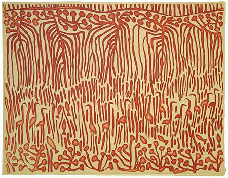 The surface of the painting is my main concern, along with the structure of the drawing. I try to suggest the qualities of nature in my lines and colours. The landscapes of the central and western deserts are currently my primary inspiration. I am also inspired by road trips to places elsewhere. I sometimes take a point of perspective that could be described as a sweeping bird’s eye view. I use the patterns of nature and a desert palette to recreate fragments of memory. I have memories that seem to slowly become part of the present in my work. The openness of nature is what most inspires me. Marina Strocchi