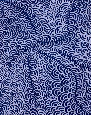 Isobel has depicted designs associated with her grandfathers country, Wantupunyu, a Kapi Tjukurrpa or Water Dreaming site to the north of Papunya west of the sacred mountain Karinyarra. There is an important waterhole here, where the custodians are of the Nampitjinpa, Nangala, Tjampitjinpa and Tjangala skin subsections.