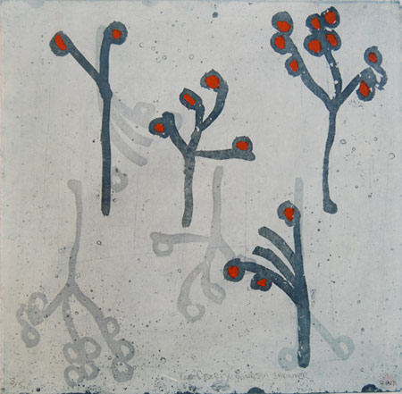 The work is part of an exhibition titled ‘Many Stories to Tell’ which features powerful images of the artists’ Arrernte homelands west of Alice Springs, and is the result of a two-week workshop with Tasmanian print maker Maddie Goodwolf.