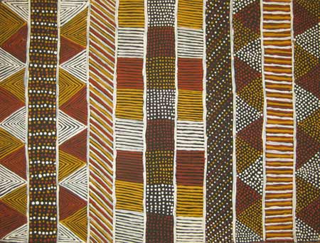 Traditional Tiwi Culture placed special significance on the Pukumani (funeral) ceremony. Mourners are decorated using natural ochres to disguise themselves from the spirit of the deceased and song and dance is performed to honour the dead. Yirrinkiripwoja (bodypaint) is the source of many contemporary Tiwi designs and performance of the Pukumani as ritual helps to reinvigorate the imagery. The shortening of the word to Pwoja – also refers to ‘best’.