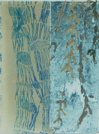 Handmade flax, cotton and abaca papers with stencils and gamba grass ‘leaf’ inclusions