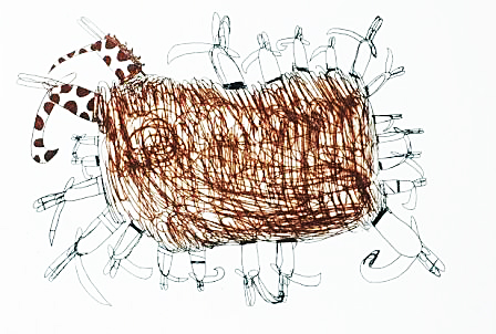 Dogs fighting and stirring up a big dust cloud. The heads and parts of the body of the dogs are obscured by the big dust cloud. The two brown spotted dogs always stick together in a fight. © Dion Beasley