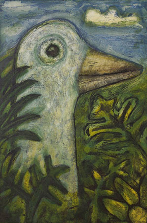 In his paintings, Bulley explores the exotic and bizarre nature of tropical life. “There is something deeply romantic about the tropics; its heat, climatic extremes, rawness and the intensity of its colours”, he observes. In Tales of the Avians, Bulley has combined astute observations of birds and the tropical environment with exotic and poignant references to fables and myths. The works have a warm and tranquil aesthetic, but tinged with allusions to impending death and decay.
