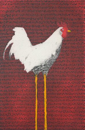 Rob Brown’s art is a circus ring of elements. His images mock and tease with satirical intent, drawing upon the exotic, iconic and profane. He is a master of parody, pun and pretence but behind the playful façade his observations are acute and ironic. Rob Brown is a master of combining the unexpected, creating poignant social, political and personal comment. In Tales of the Avians Brown dissects and reconnects images of birds and animals which are carefully explained in meaningless text.
