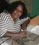 Rhonda was born and grew up in Alice Springs. Previously Rhonda has made necklaces and produced some paintings. However more recently she has discovered an interest and passion for making soft sculptures. Her inspiration for her camels, come from seeing them running wild on the South Road out of town when she was a child. She also produces birds, dolls, echidnas and anything else that might reflect life in and around Alice Springs. Rhonda has found that the art room gives her a place to be safe and to make a better future for herself. Rhonda says that sewing makes her feel happy and that she is proud of the work she creates.