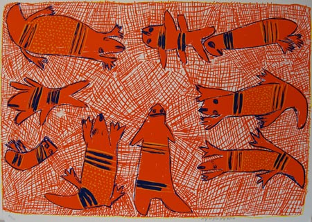 Gunytjulu means goanna or gecko. This design is about the gunytjulu and other animals that we can see in the water and in the bush.