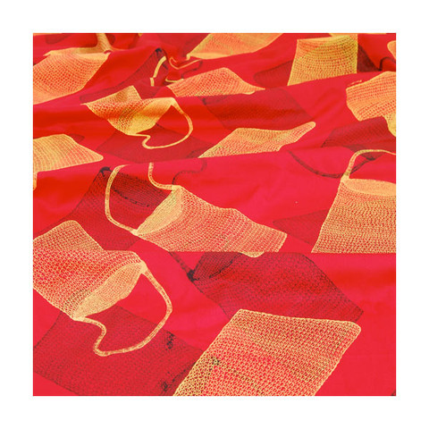 Hand printed silkscreen design with acrylic pigment on linen and cotton drill.